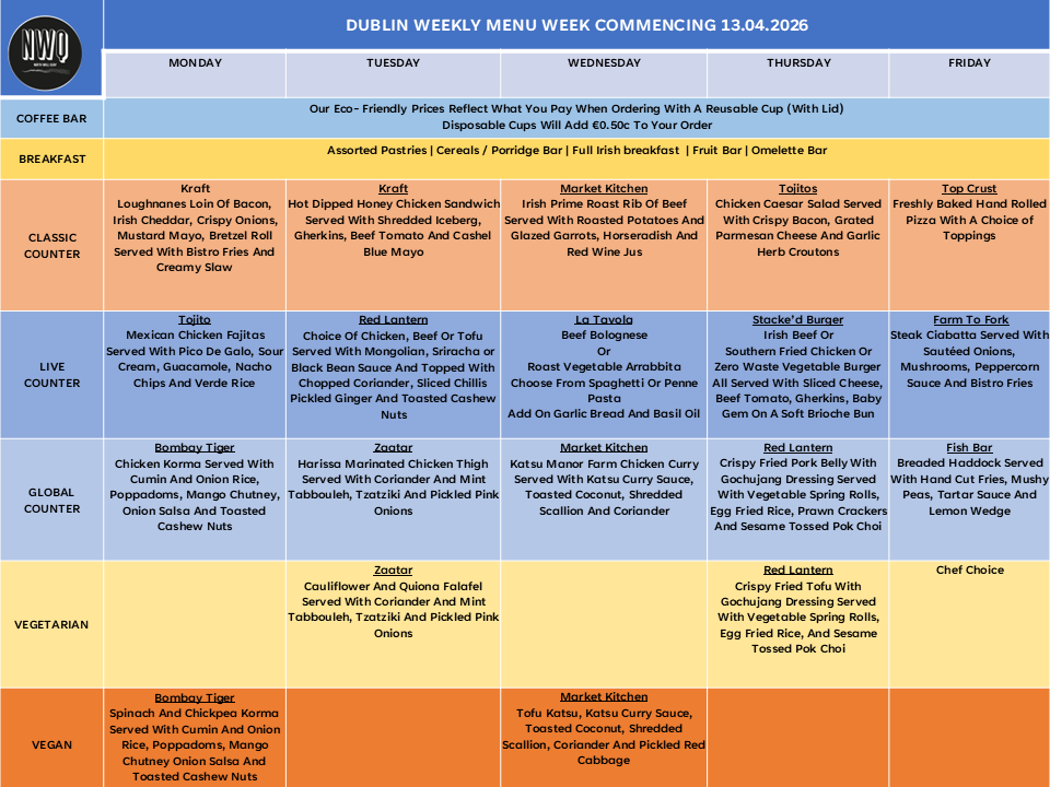 Weekly Menu 13 to 17 April 2026