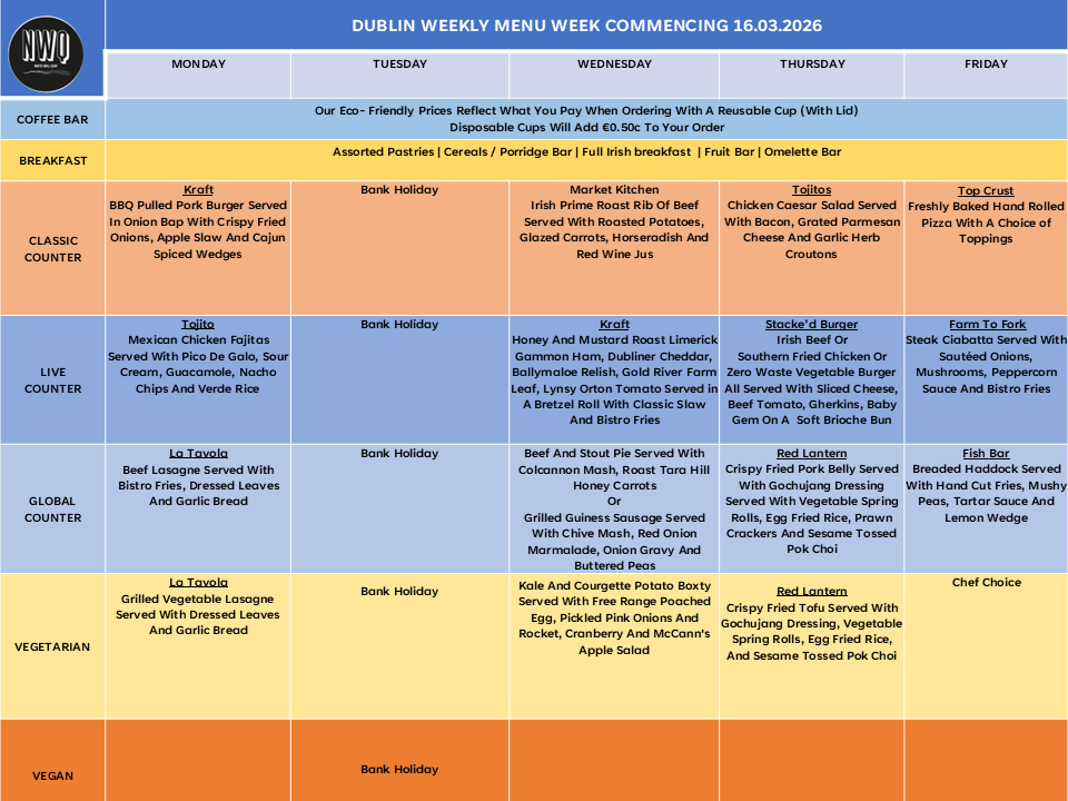 Weekly Menu 16 to 20 March 2026