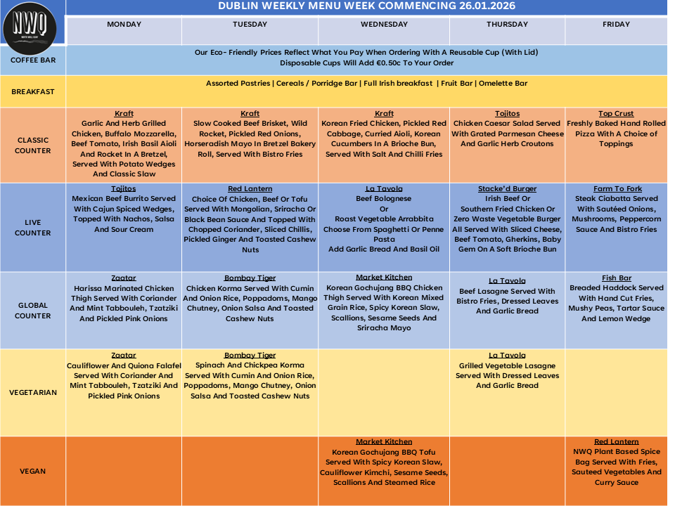 Weekly Menu 19 to 23 January 2026
